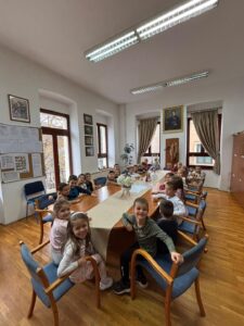 Potom smo ušli su u zbornicu i za velikim stolom učitelja razgovarali o važnim školskim temama i tako, barem na trenutak, postali pravi učitelji i učiteljice.
